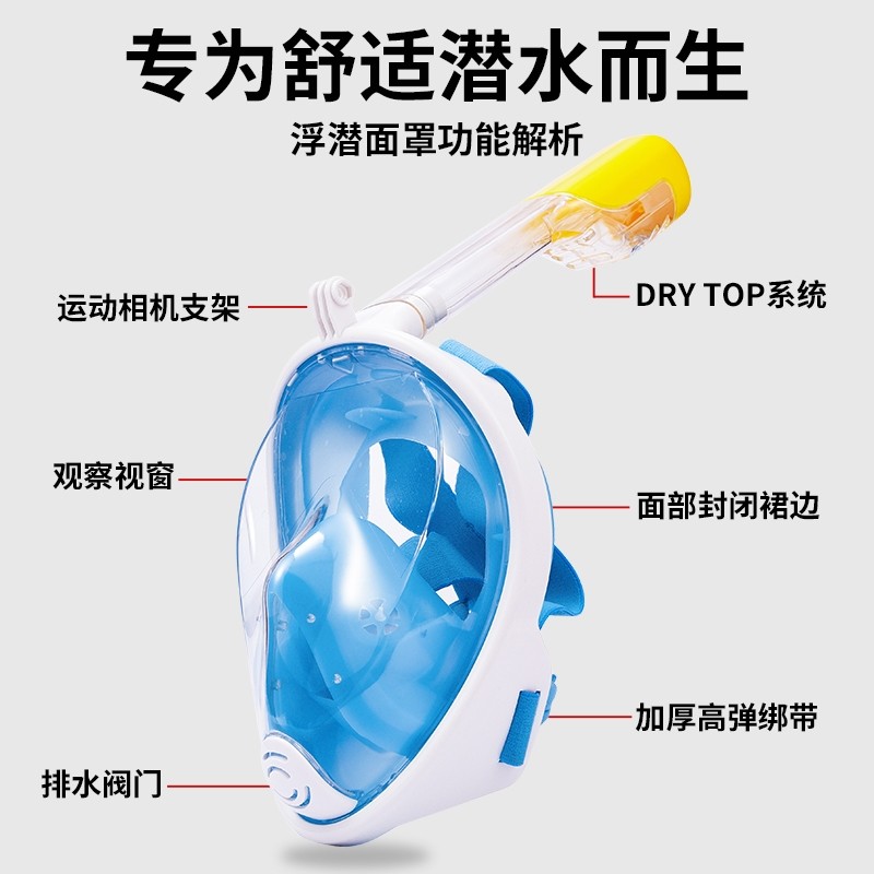 浮潜三宝潜水面罩成人儿童游泳装备防雾面镜全干式呼吸器浮潜面罩
