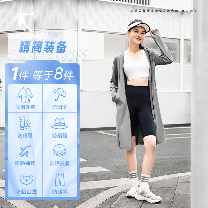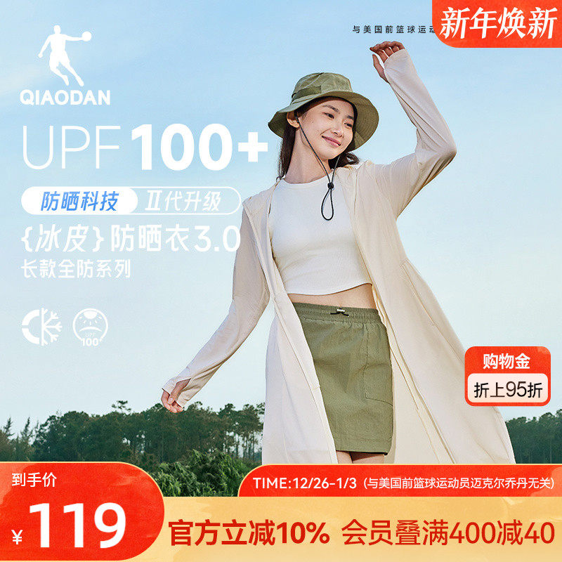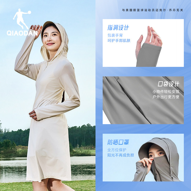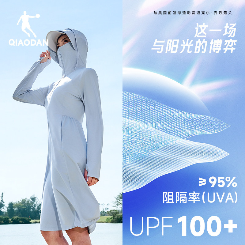 乔丹冰皮3.0长款防晒衣女UPF100+夏季新款防紫外线冰感透气轻薄