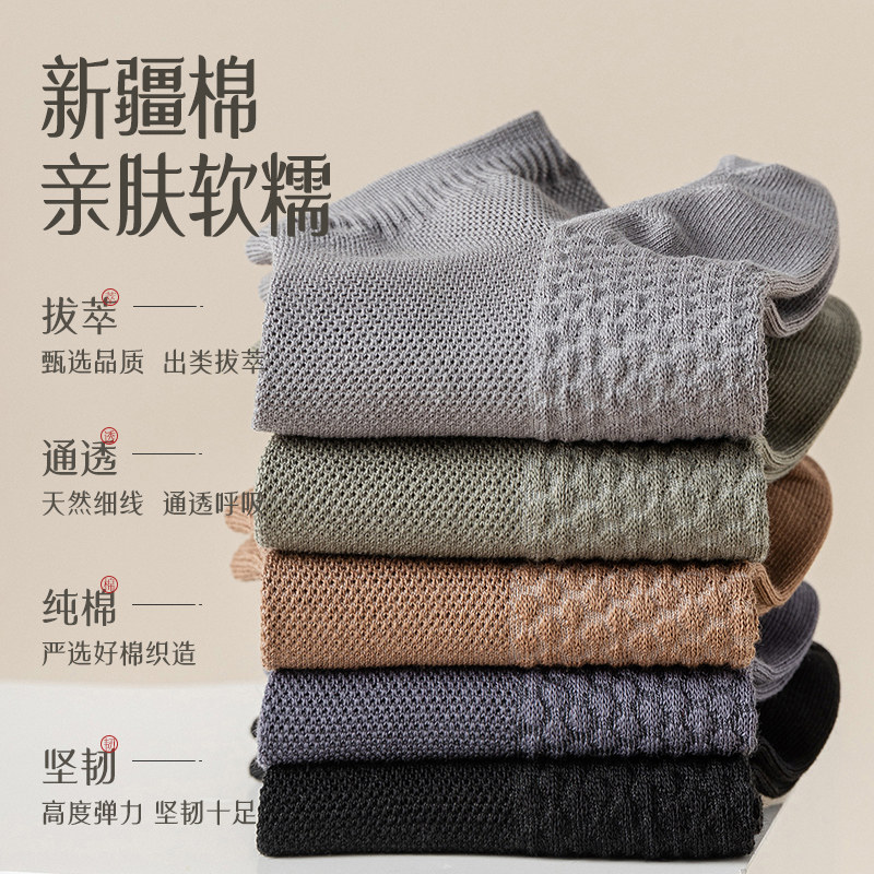 诸暨袜子男士新疆棉短袜夏季薄款防臭抗菌夏天网眼纯色船袜防脚气