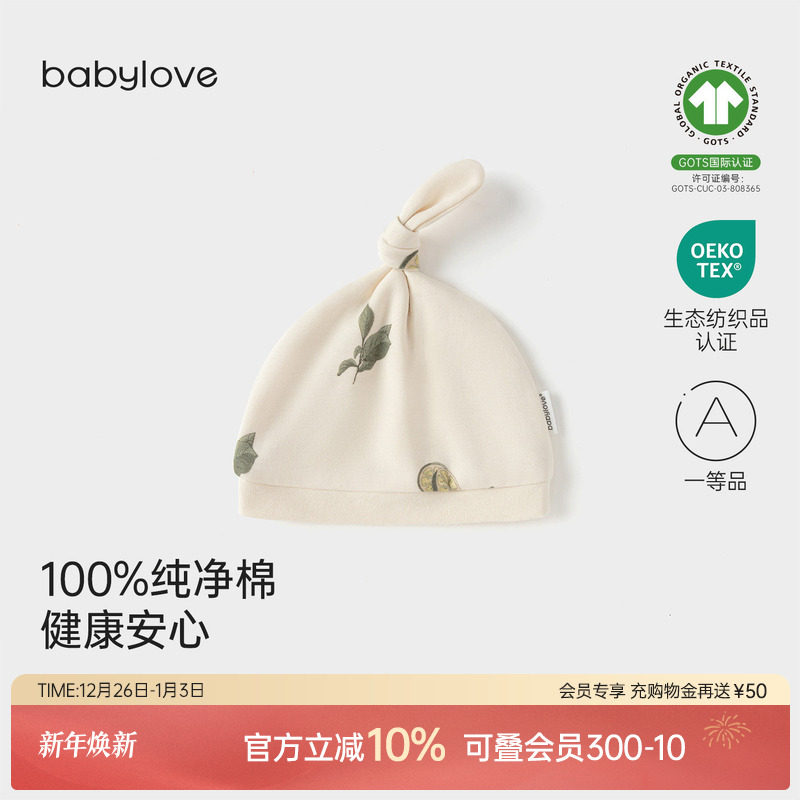 babylove新生儿胎帽纯棉春秋婴儿护囟门初生满月宝宝帽子柠静致远