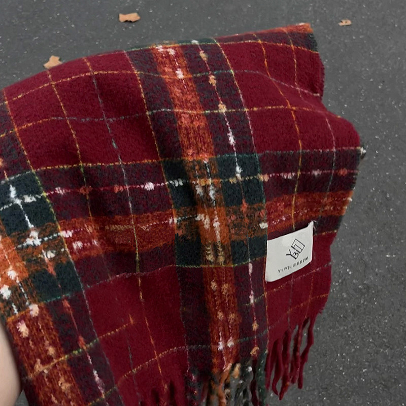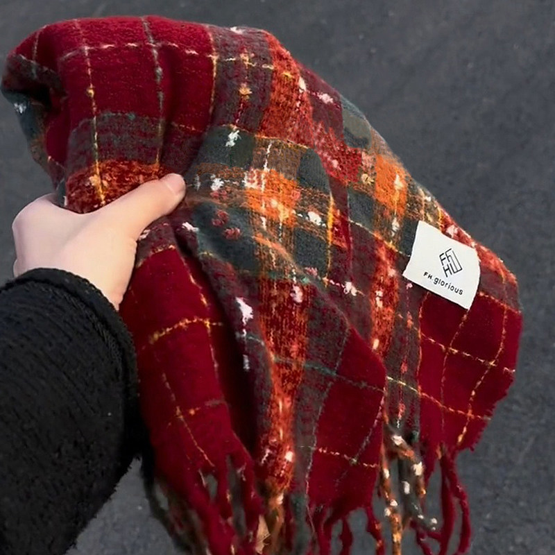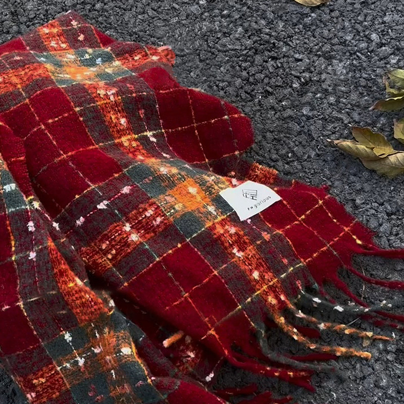 2025新款红色格子圣诞围巾女冬季韩系氛围感加厚披肩新年围脖条纹