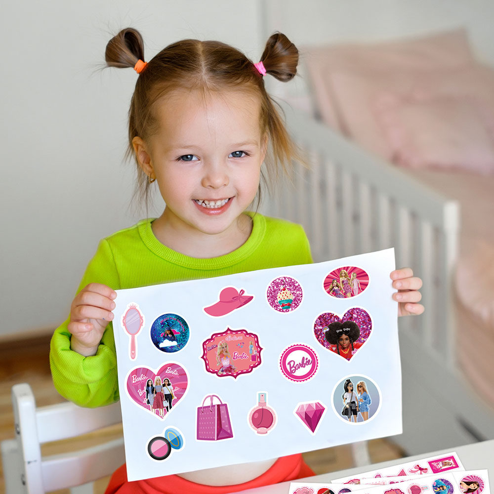 16张芭比娃娃拼图贴纸卡通可爱创意精美少女心素材拼贴贴画diy