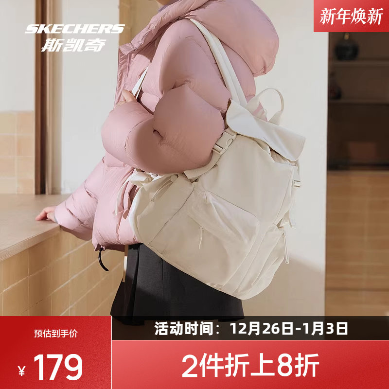 斯凯奇2025秋季新品男女同款简约百搭防泼水双肩包户外包轻量背包