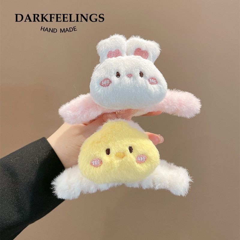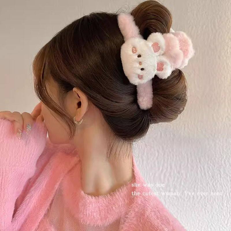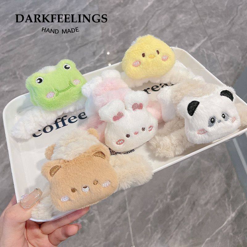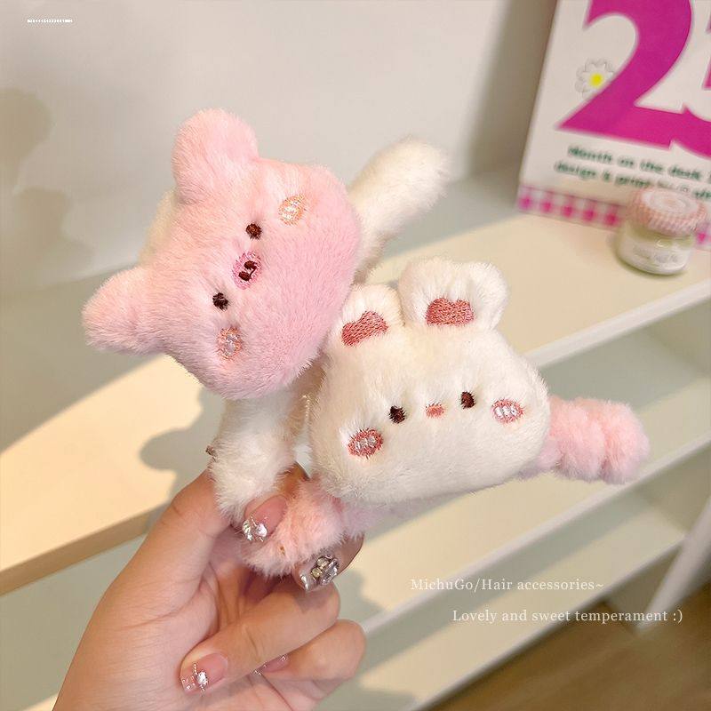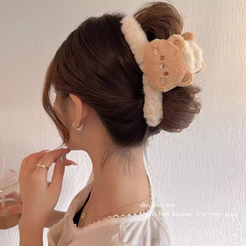 卡通公仔大号毛绒抓夹女秋冬后脑勺盘发鲨鱼夹可爱小熊发夹发饰