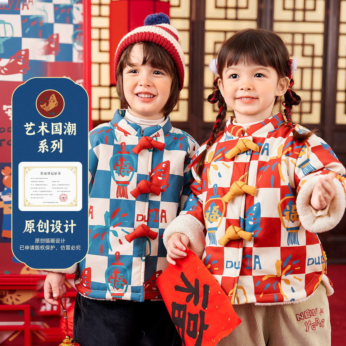 嘟嘟家儿童年装拜年服宝宝喜庆唐装冬季男童过年棉服女童周岁礼服