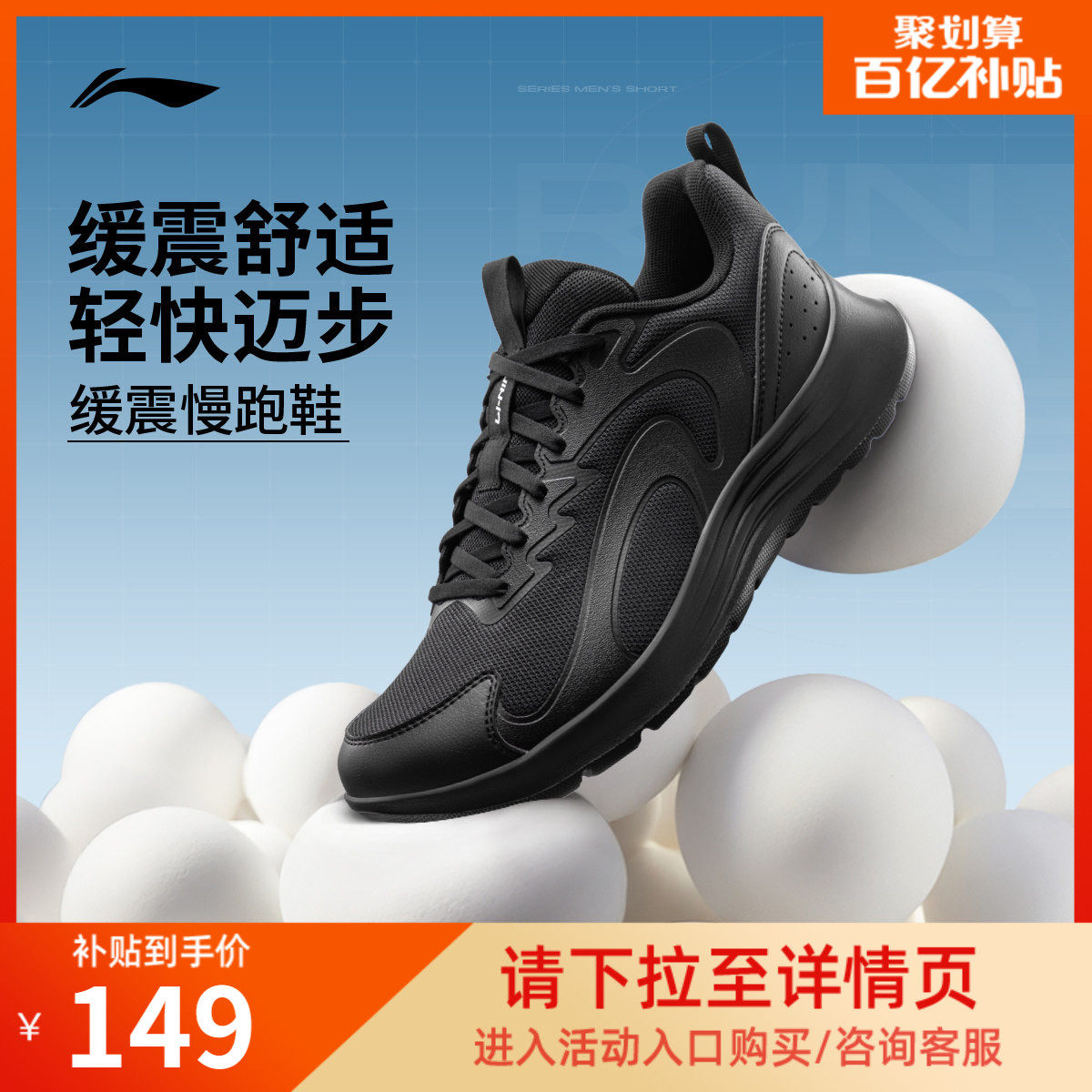 李宁跑步鞋男鞋官方减震耐磨网面轻便透气跑鞋黑色休闲慢跑运动鞋