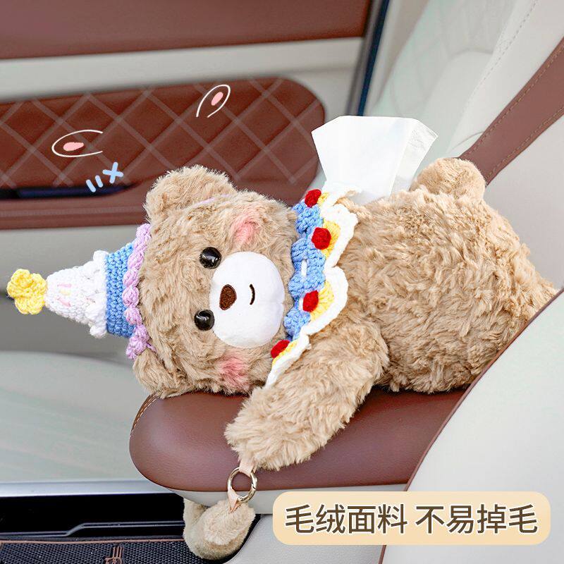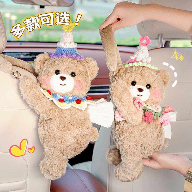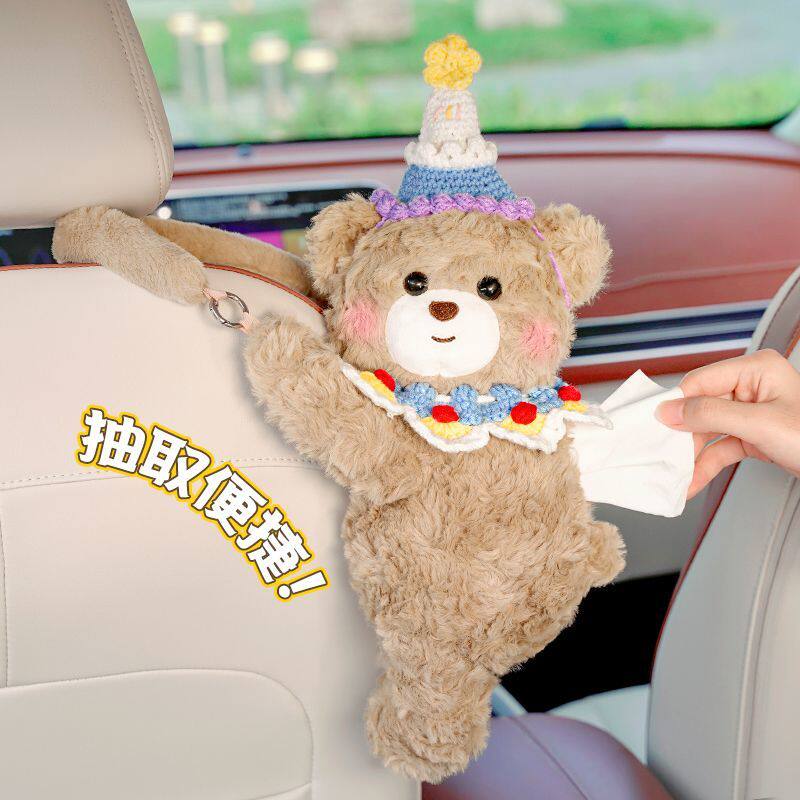 车载纸巾盒卡通可爱小熊抽纸盒挂式创意高级感女士车用纸巾挂袋套