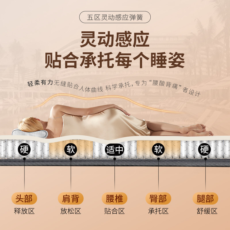 金可儿护脊偏硬床垫席梦思乳胶垫五区弹簧床垫 弦月5