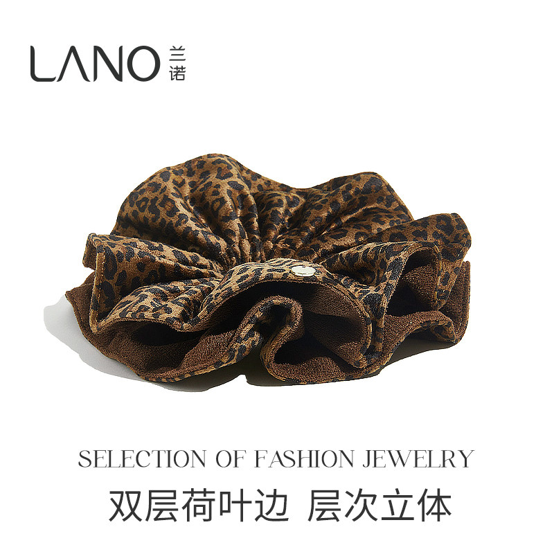兰诺双层豹纹大肠发圈女高级感洋气时尚2025新款扎头发丸子头发饰