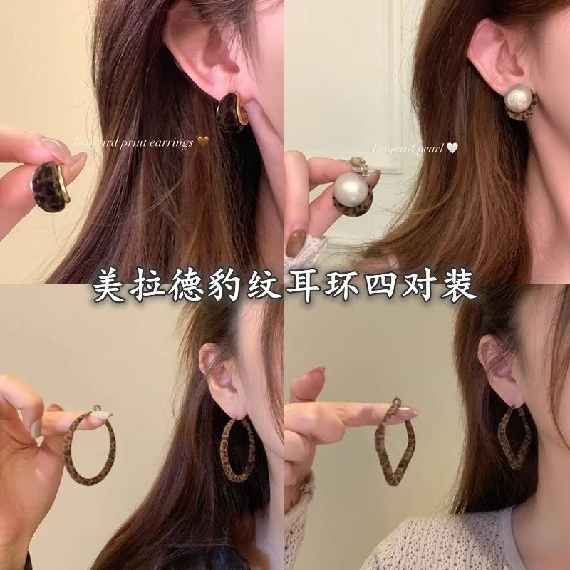 豹纹琥珀色耳圈女秋冬2025新款爆款高级耳饰复古港风大耳环圈圈