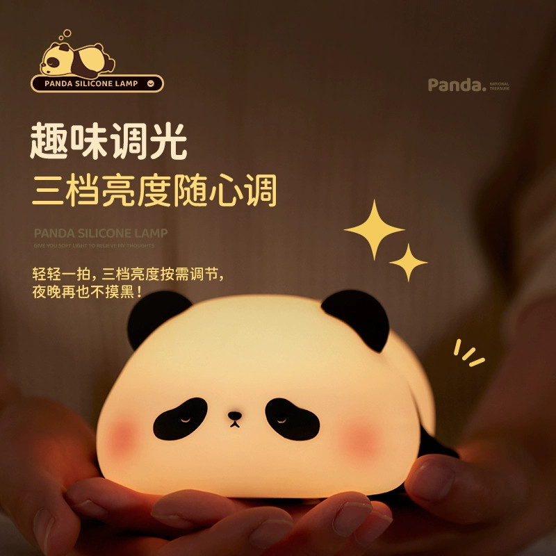 熊猫胖达柔光硅胶灯小夜灯护眼拍拍灯卧室台灯儿童女生圣诞礼物