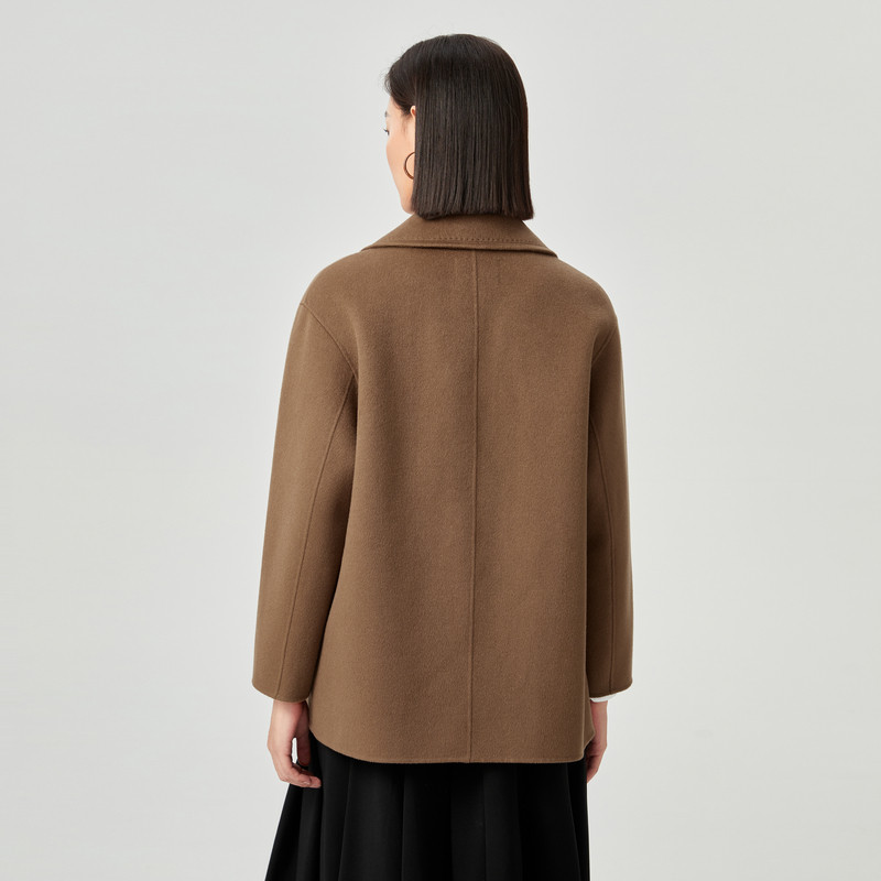 苏丽羊驼高定101801爆款大衣双排扣女短款秋冬毛呢外套