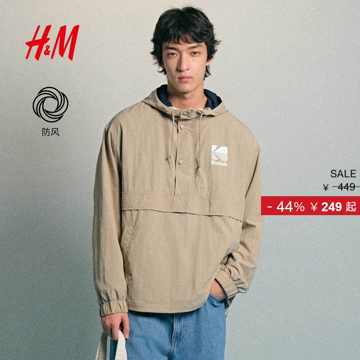 【柯达】HM男装风衣2025年冬季新款印花图案尼龙防风衣1317024