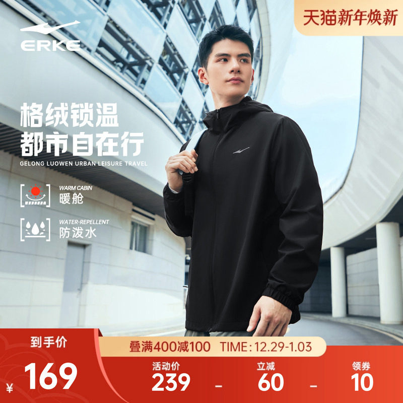 暖舱丨鸿星尔克外套男2025冬季新款男士加绒冲锋运动夹克风衣男款