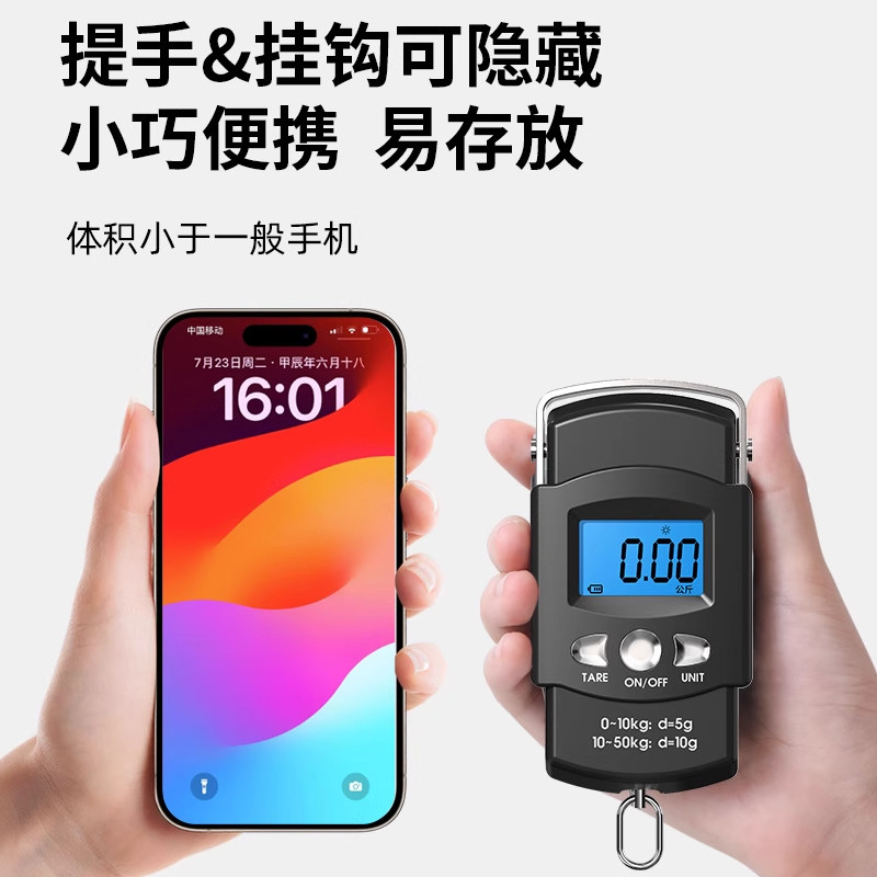 志高手提电子秤迷你高精度便携式家用快递钩秤75KG称鱼小型弹簧秤