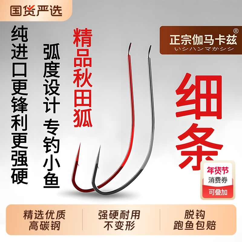 日本进口高档超细秋田狐鱼钩不易跑鱼可挂红虫鲫鱼有刺野钓小鱼钩