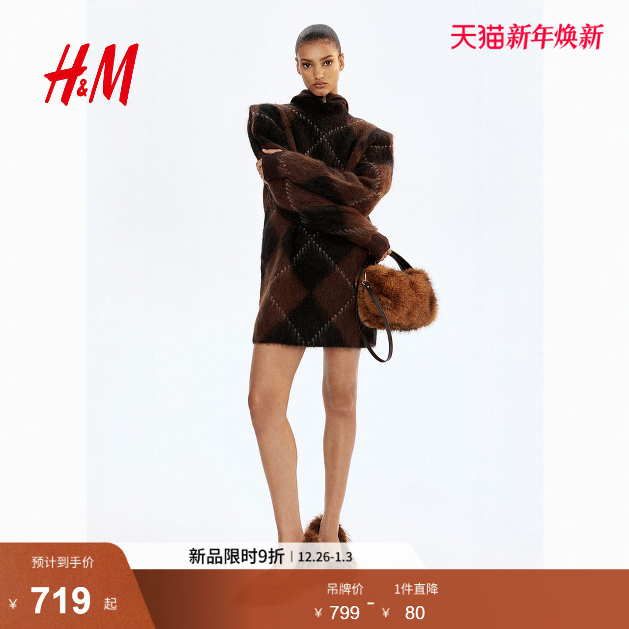 HM2025冬季新款女装时尚休闲百搭马海毛混纺高领连衣裙1308377
