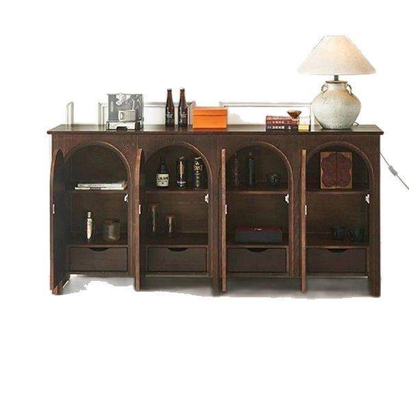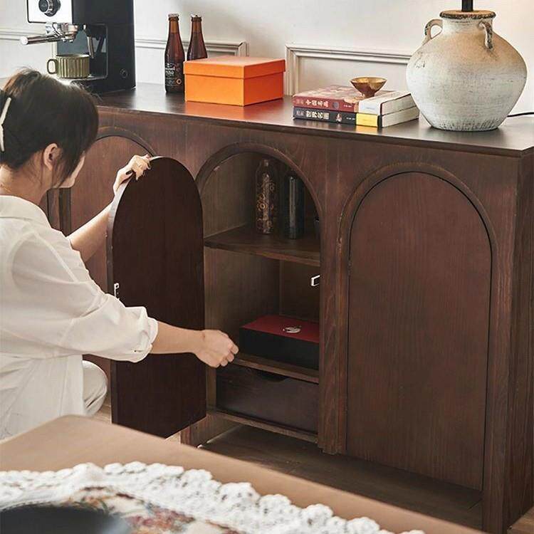 靠墙茶水柜法式中古风拱形门实木餐边柜复古玄关储物客厅家用斗柜