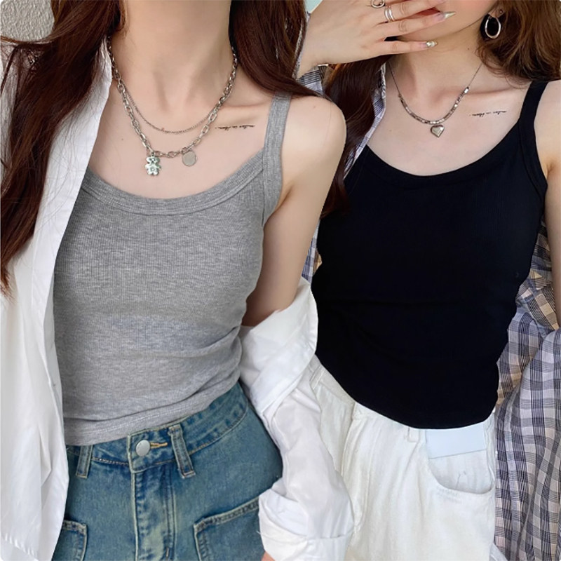 棉螺纹吊带背心女士内搭防走光春秋季新款外穿无胸垫学生打底上衣