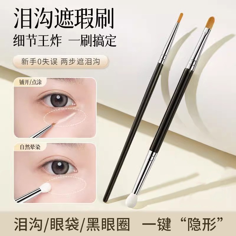 T301双头遮瑕刷海绵圆头泪沟遮盖黑眼圈眼部细节扁头软毛化妆刷