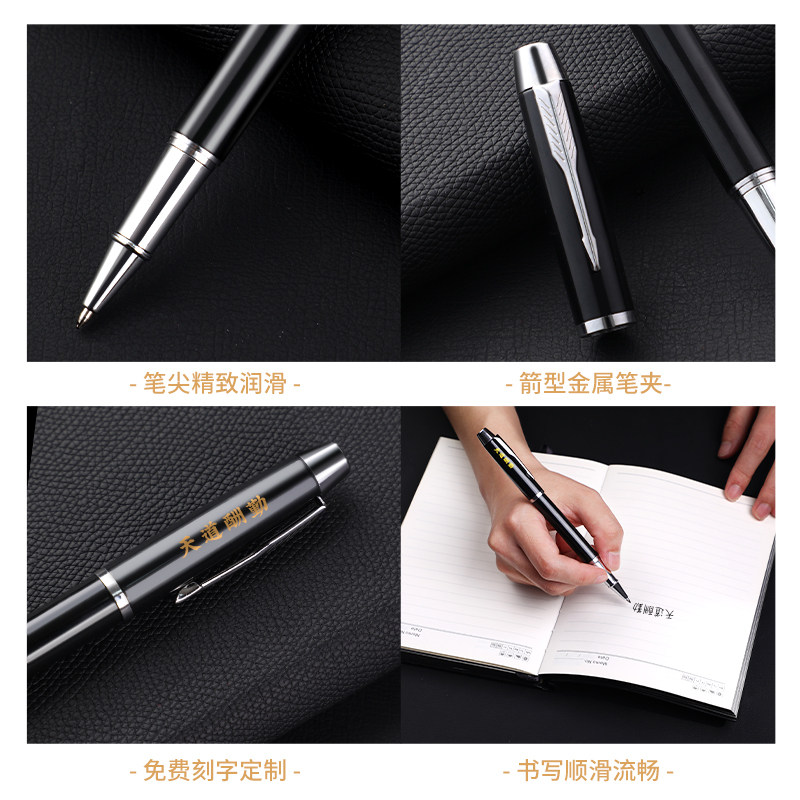 金属签字笔可印logo碳素笔水笔黑色中性笔高颜值走珠笔速干签字笔