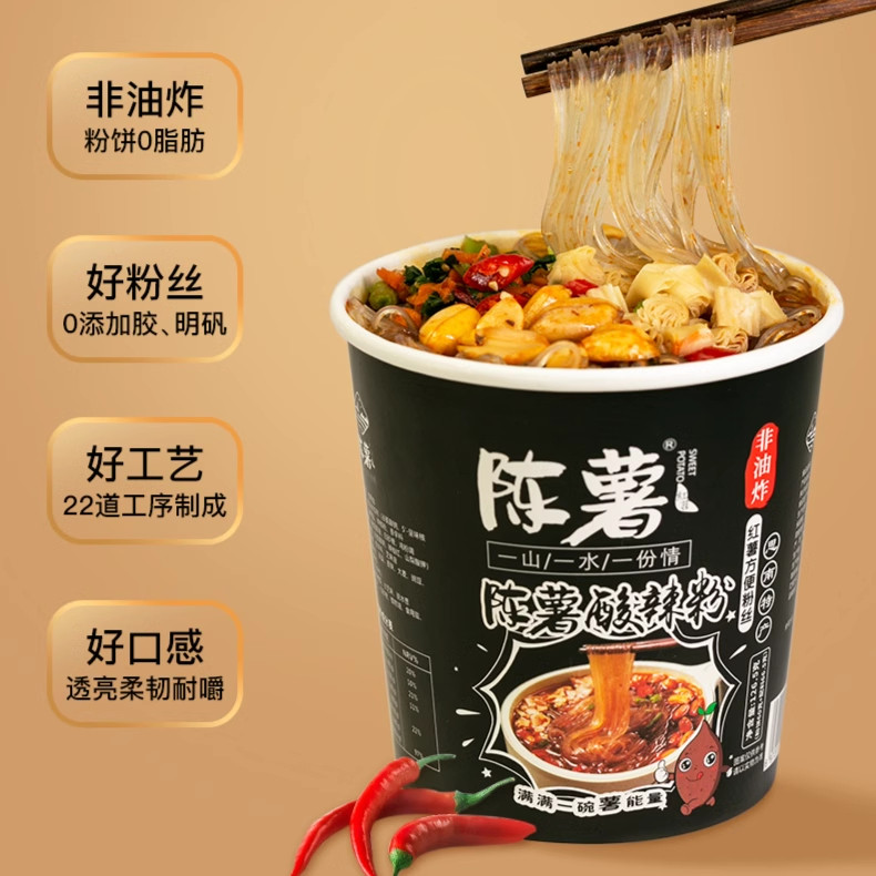 黑金版酸辣粉桶装贵州红薯粉丝米线夜宵冲泡方便速食品酸辣粉