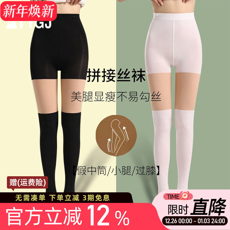 2件包邮 高尔夫球袜连脚假两件薄款过膝长筒防走光打底裤运动袜子