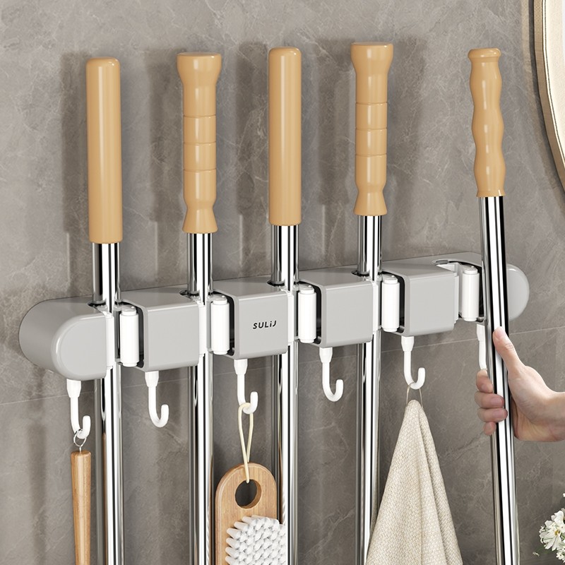 拖把壁挂夹扫把拖布挂钩免打孔夹架神器卫生间厨房置物架卡扣吸盘