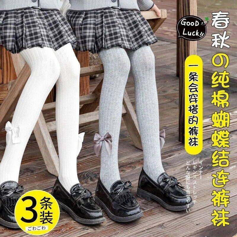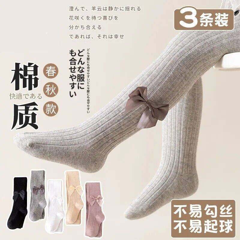 婴儿女童打底裤春秋纯棉大pp儿童外穿宝宝连体连裤袜子白色薄款