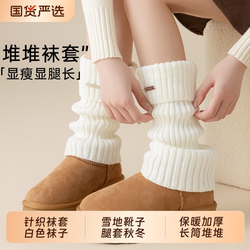 针织袜套白色袜子女小腿袜JK雪地靴子腿套秋冬保暖加厚长筒堆堆袜