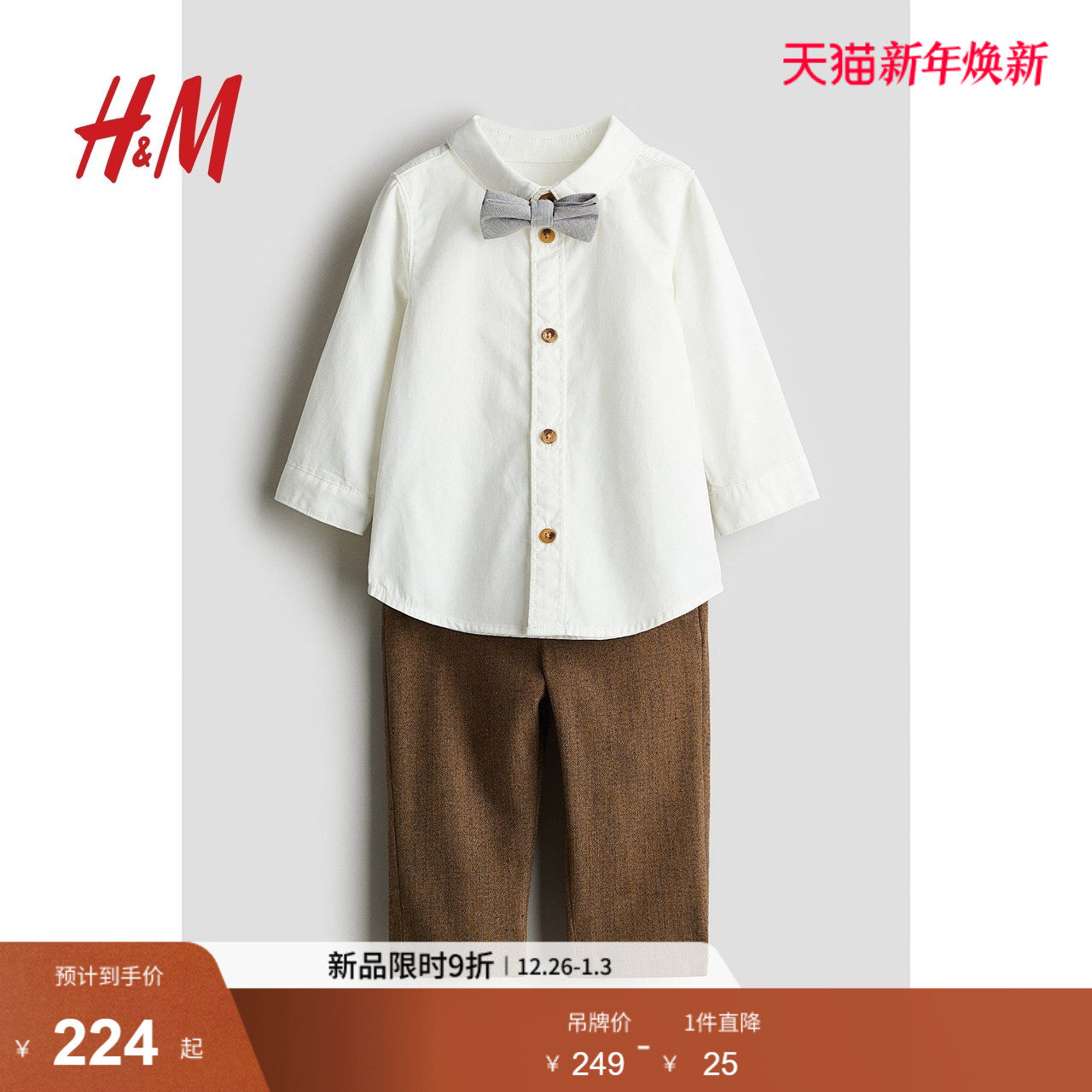 HM童装男婴套装3件式冬季礼服领结长袖长裤1246239