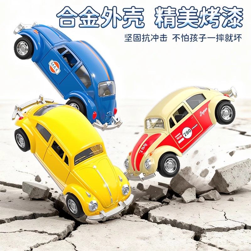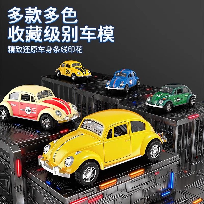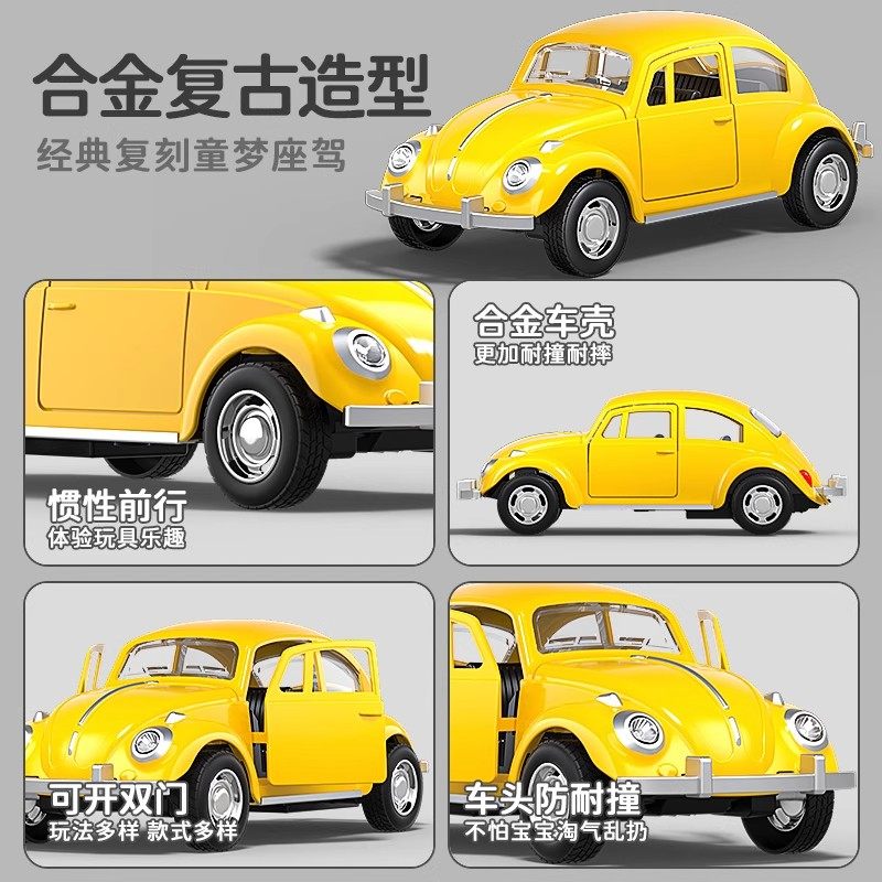 复古大众甲壳虫收藏合金老式汽车模型儿童男孩玩具车怀旧仿真摆件