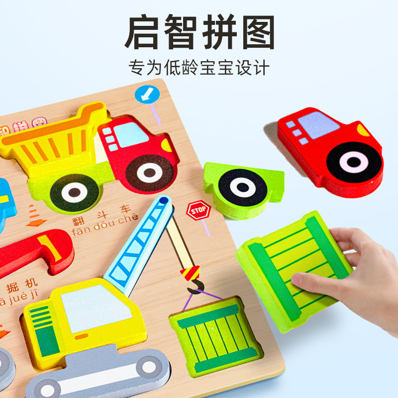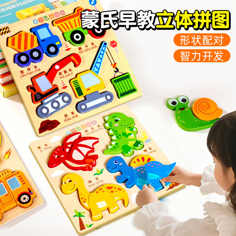 儿童立体拼图1到3岁宝宝男孩蒙氏益智玩具配对形状智力认知动物