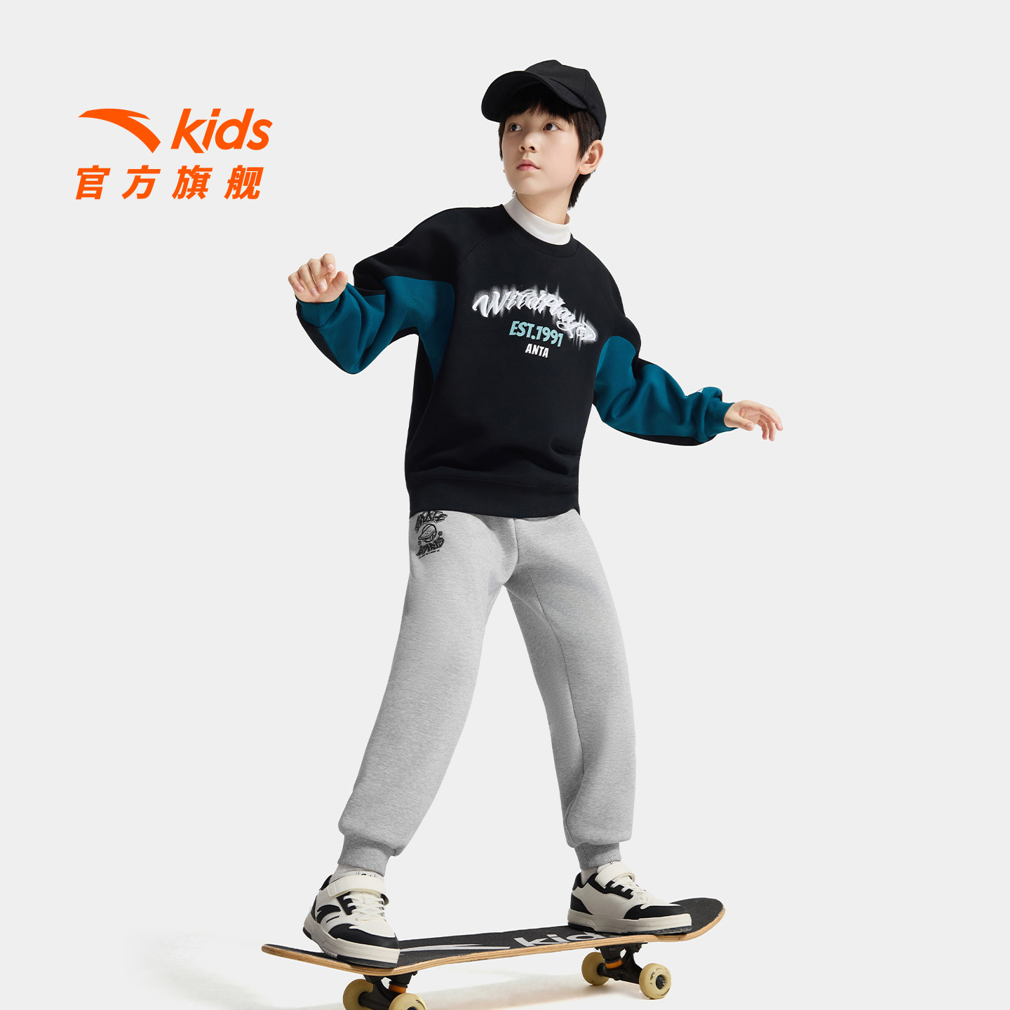 安踏儿童男大童运动长裤2025冬季新款舒适保暖中大童运动加绒裤子