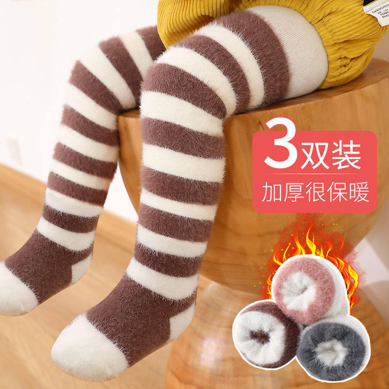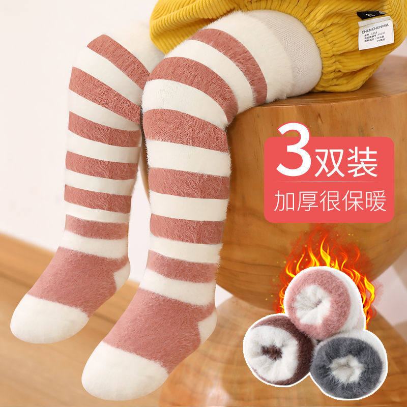 婴儿长筒袜秋冬季加绒加厚过膝护膝冬天保暖新生儿宝宝护腿长袜子