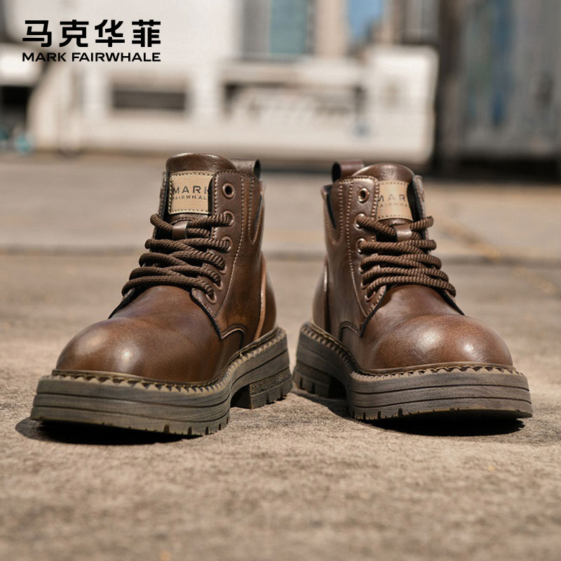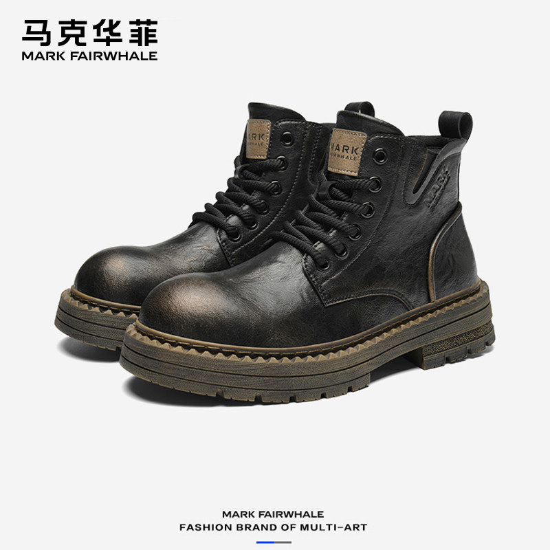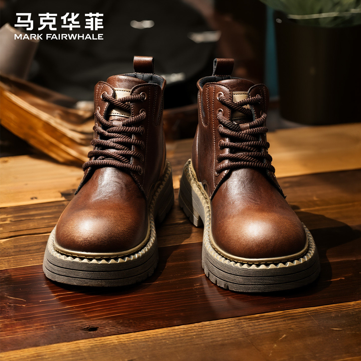 马克华菲马丁靴男款皮鞋男鞋工装靴复古鞋子皮靴男士靴子切尔西靴