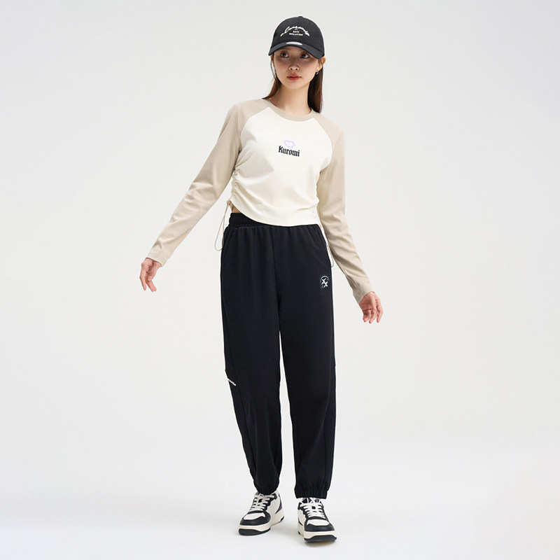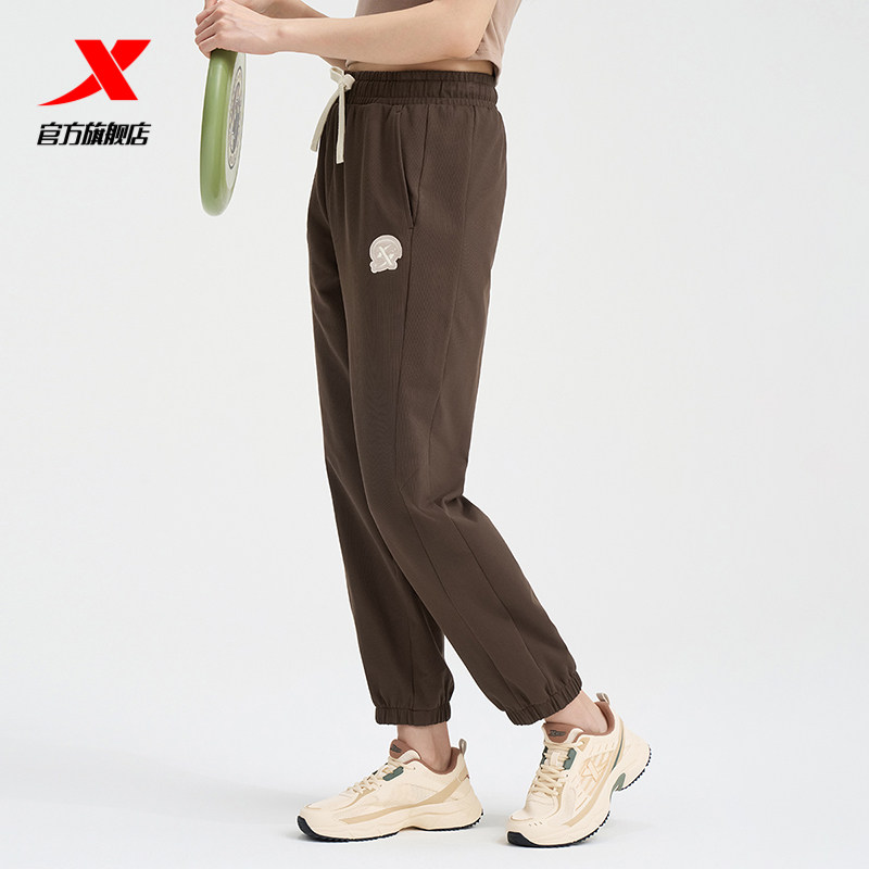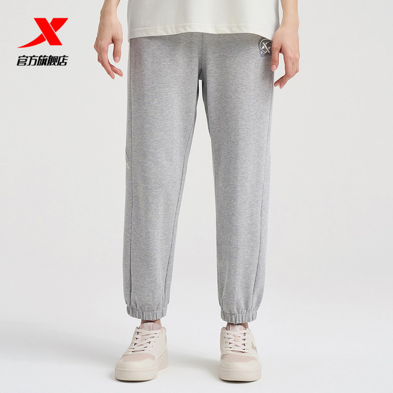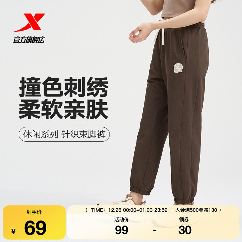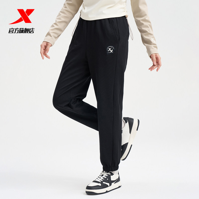 特步针织长裤女2025春秋季针织束脚运动长裤立体剪裁宽松休闲裤