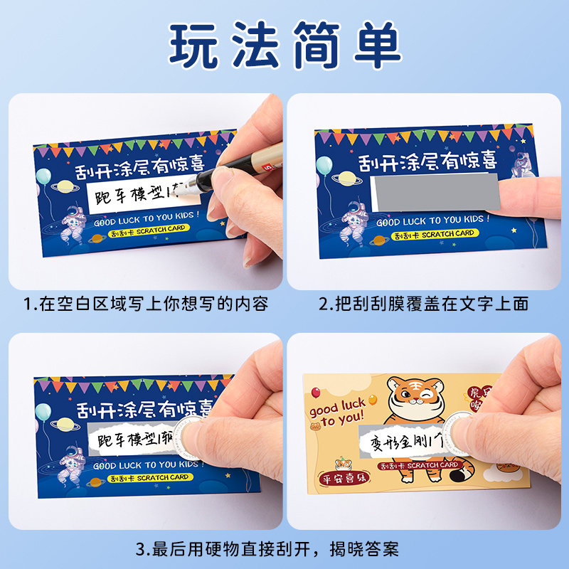 创意刮刮卡小学生奖励儿童成长激励diy自制刮刮乐卡片惊喜抽奖券幸运孩子玩具学习刮刮奖罚刮奖卡涂层膜定制