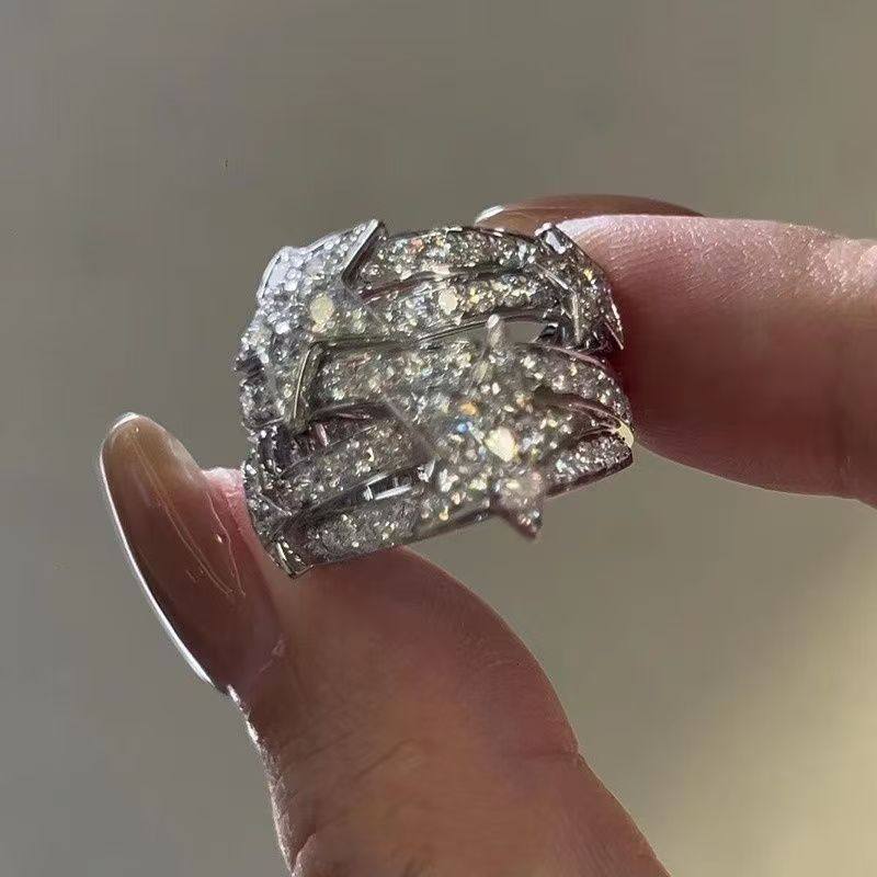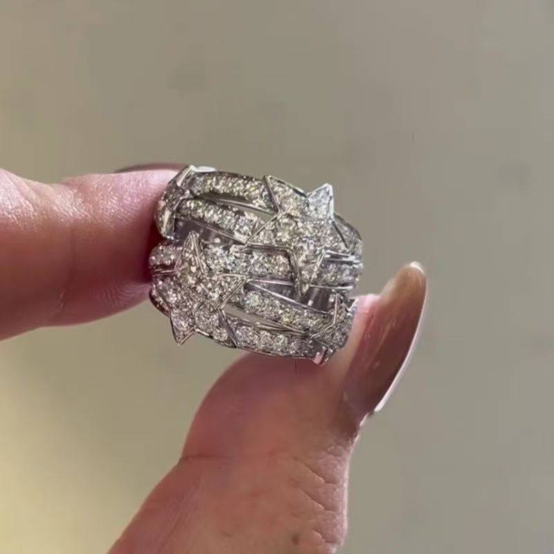 「伊丽莎白」中古轻奢满钻星星多层戒指千金感轻奢爆闪高级感指环