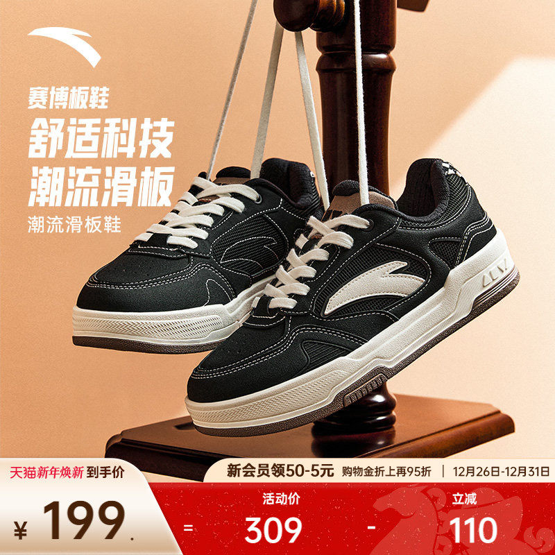 【王一博同款】安踏赛博丨经典低帮黑白板鞋女鞋百搭小白鞋运动鞋