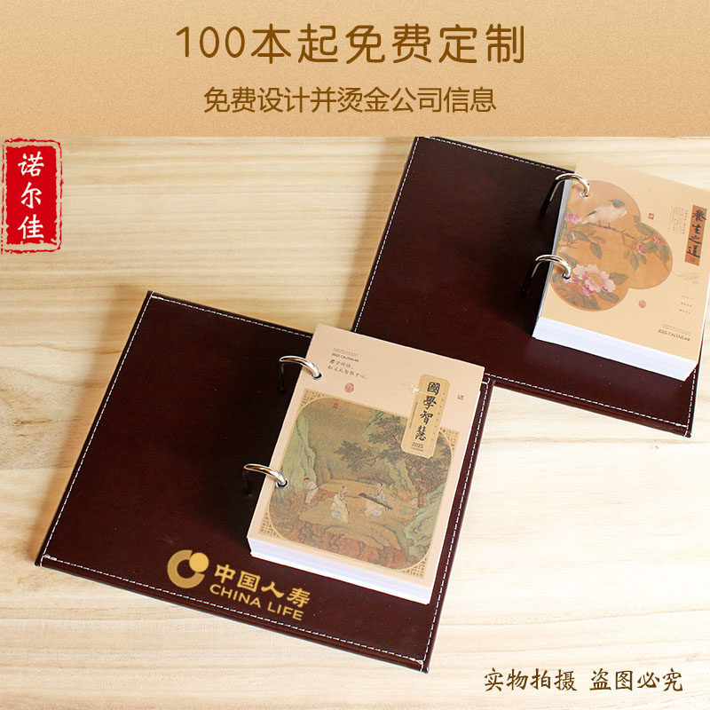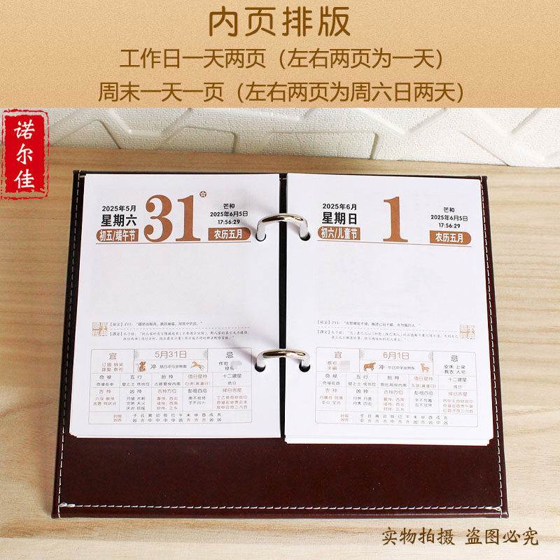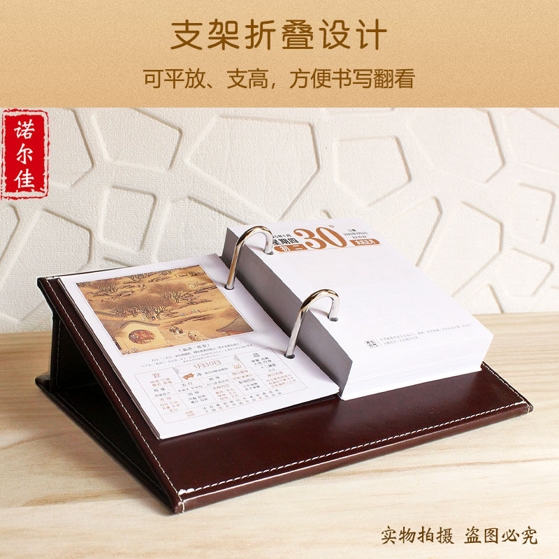 2026年简约皮座台历架一天一页记事日历芯办公定制批发送礼印LOGO