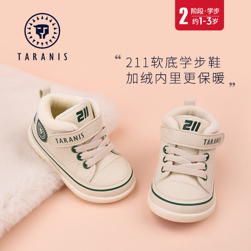 泰兰尼斯婴儿学步鞋儿童秋冬款男童小白鞋防滑软底女宝宝机能鞋子