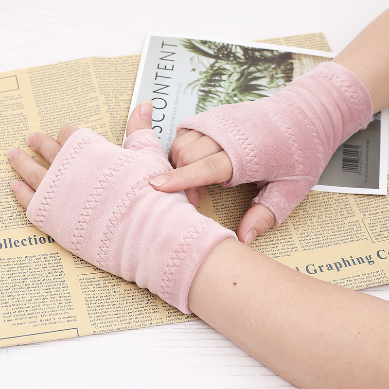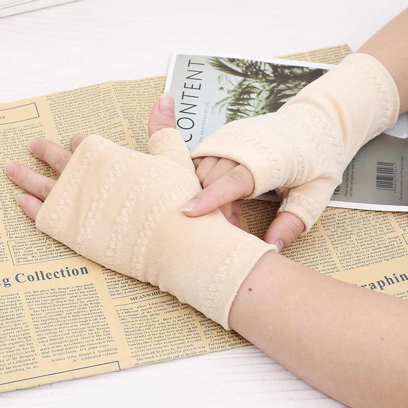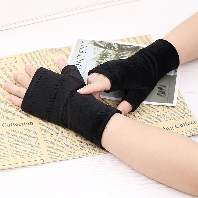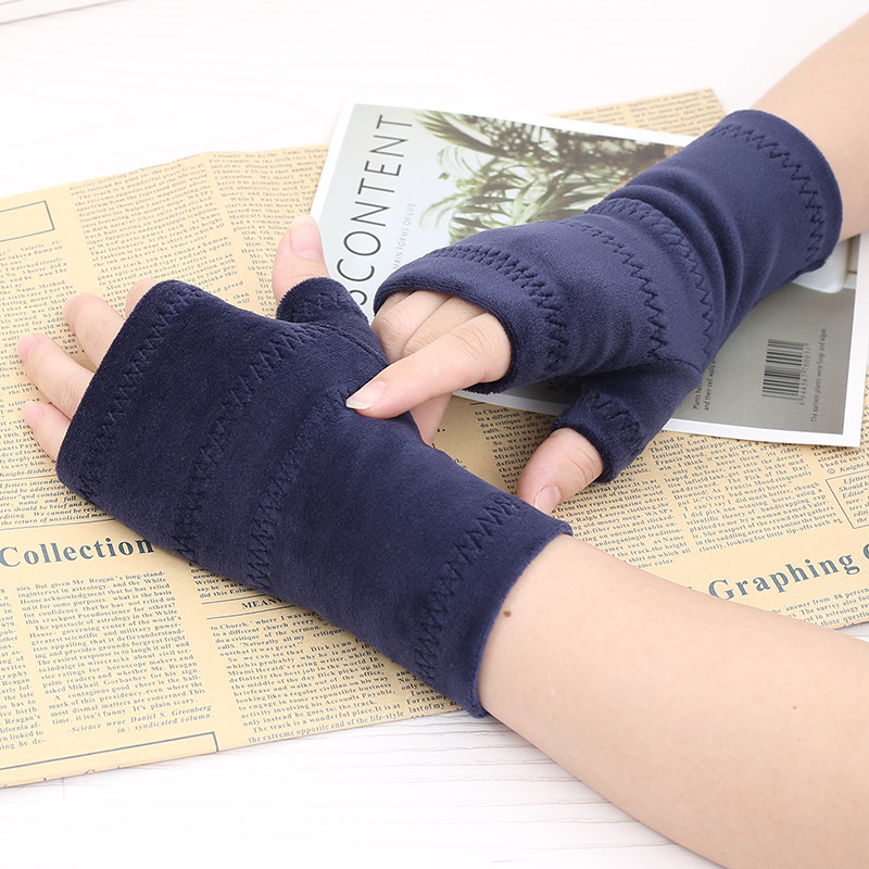 秋冬季半截绒半指手套防寒冻加绒男女短款高弹简约遮疤宽松保暖厚