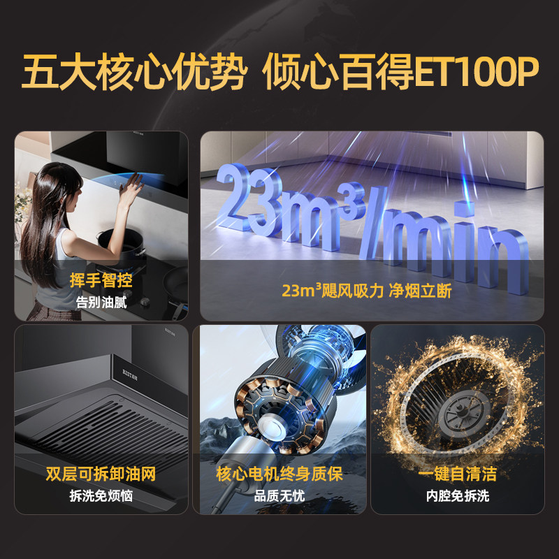 华帝百得欧式抽油烟机燃气灶顶吸大吸力家用自动洗三两件套装正品