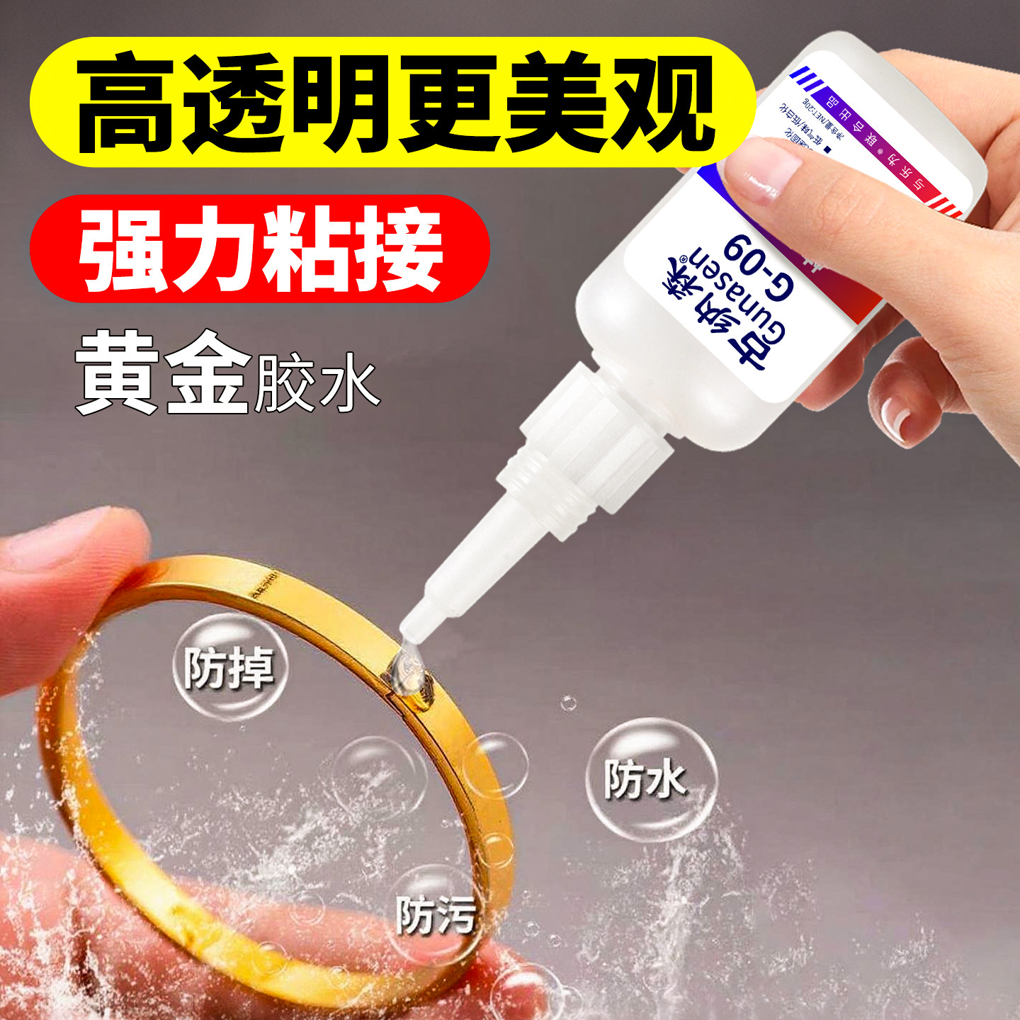 黄金专用胶透明珠宝首饰镶嵌专用胶水强力粘银饰戒指K金吊坠耳环手链补钻胶速干透明无痕粘合剂手工diy快干胶