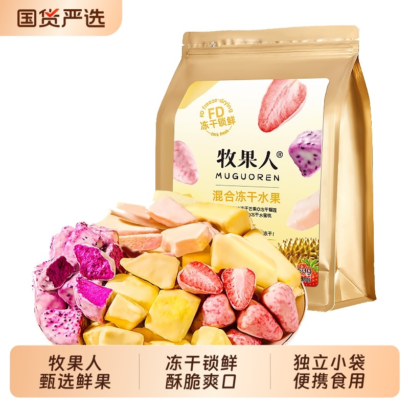 牧果人综合水果冻干/草莓芒果榴莲水蜜桃火龙果干零食小吃