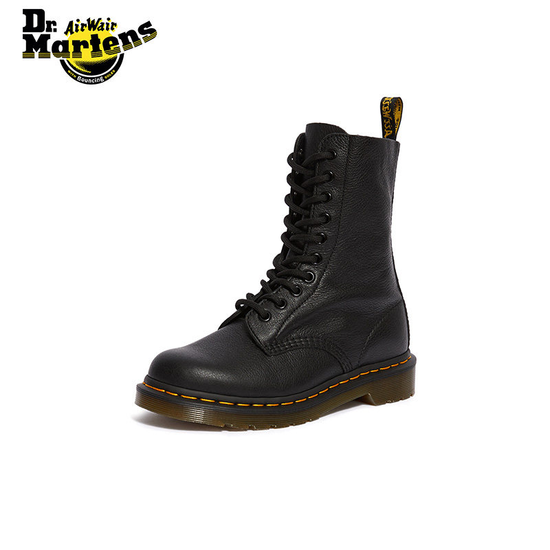 Dr.Martens马丁博士1490英伦冬机车靴荔枝纹软皮黑色女中帮马丁靴