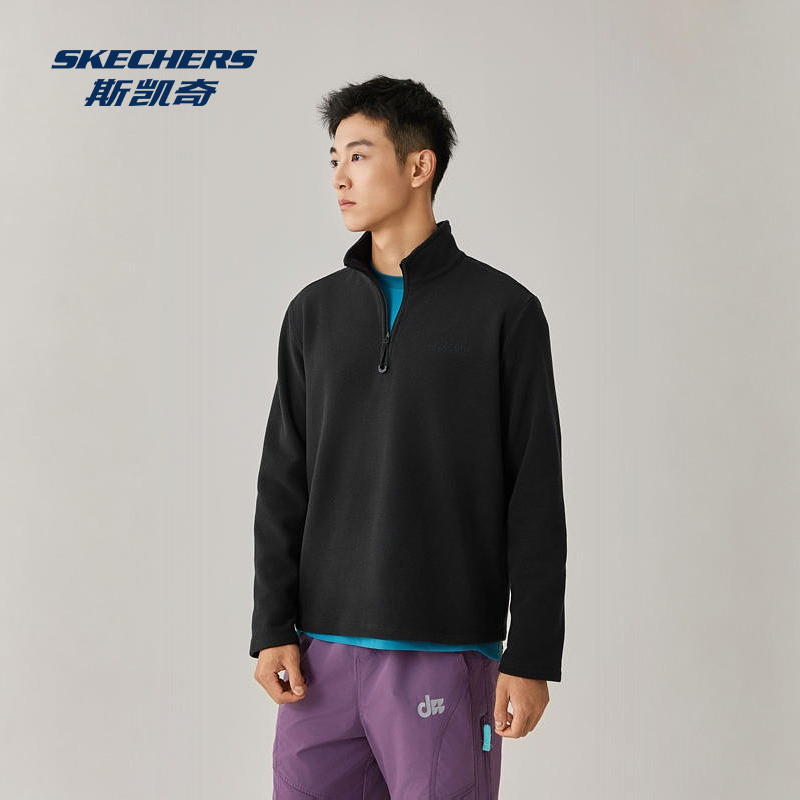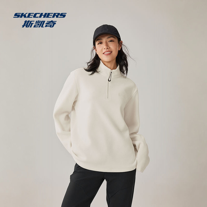 斯凯奇卫衣T恤2025秋新款针织半开胸运动休闲防静电柔软舒适保暖
