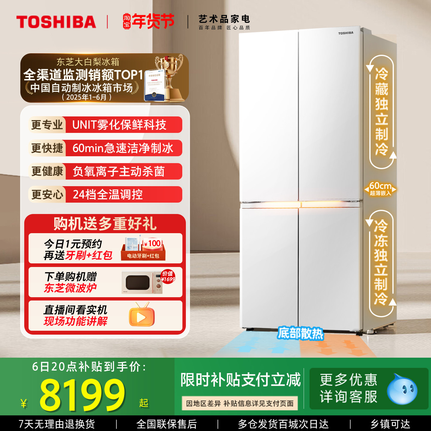 东芝大白梨冰箱639零嵌大容量十字门双系统家用制冰新品以旧换新