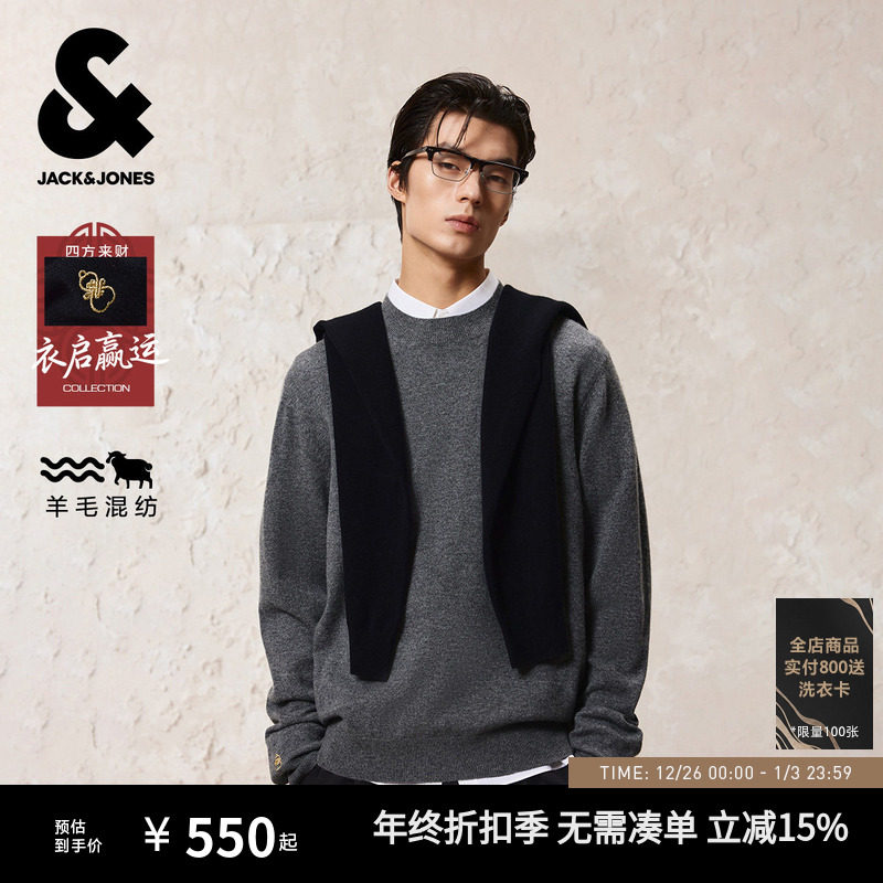 【衣启赢运】杰克琼斯男装秋冬新款纯色毛衣羊毛混纺针织衫